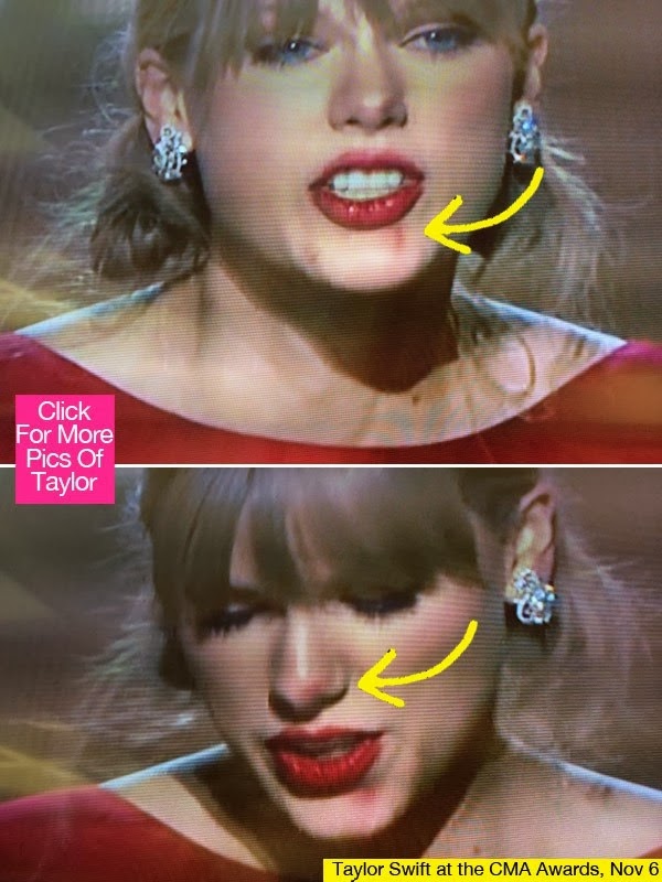 Everyone loves Taylor Swift signature red lipstick, but when she accepted her pinnacle awards , too many congratulatory hugs and kisses led to major make up mal functio and she got reds all over her mouth. Lol